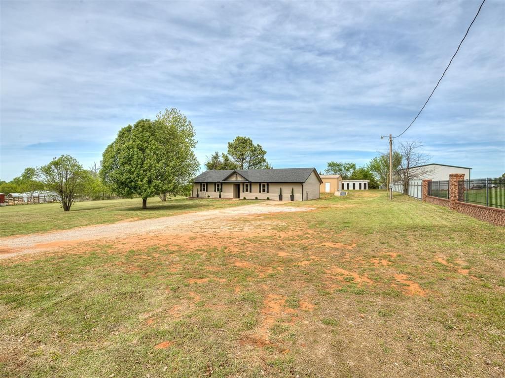 This stunning, fully remodeled 3-bedroom, 2-bath home sits on beautiful acreage in peaceful rural Blanchard, Oklahoma, within the highly sought-after Bridge Creek School District. Offering the perfect balance of modern updates and country living, this property delivers space, privacy, and convenience all in one.No detail was overlooked in this top-to-bottom renovation. The home has been thoughtfully updated to provide worry-free living with stylish finishes and quality craftsmanship throughout. Recent upgrades include a new roof with new decking, water heater, windows, exterior siding, modern LED lighting, ceiling fans, fresh interior and exterior paint, and all new flooring throughout.The fully redesigned kitchen serves as the heart of the home, featuring brand-new cabinetry, 3cm granite countertops, and stainless steel appliances, including dishwasher, range and microwave. Both bathrooms have been completely updated with new vanities, fixtures, and sleek walk in shower in the primary and a new tub and shower surround in the guest bath. Additional upgrades include: LED lighting, ceiling fans, and smoke alarms.Step outside and enjoy wide-open space, peaceful surroundings, and beautiful country views. The property offers plenty of room for outdoor living, gardening, or simply enjoying the quiet lifestyle. A 20x30 shop with concrete floors and electricity, and an 8'x40' shipping container partitioned for animals or livestock, Ideal for hobby's or storage needs.Conveniently located near Highways 37, 4, 9 and I44, offering easy access to Tinker AFB, FAA, Oklahoma City, Norman, and Mustang, giving you the best of country living without sacrificing convenience.This is the kind of property that rarely hits the market, fully updated, move-in ready, and sitting on acreage with everything already in place. This home also qualifies for USDA rural financing with zero down payment. Schedule your private showing today to experience everything it has to offer.