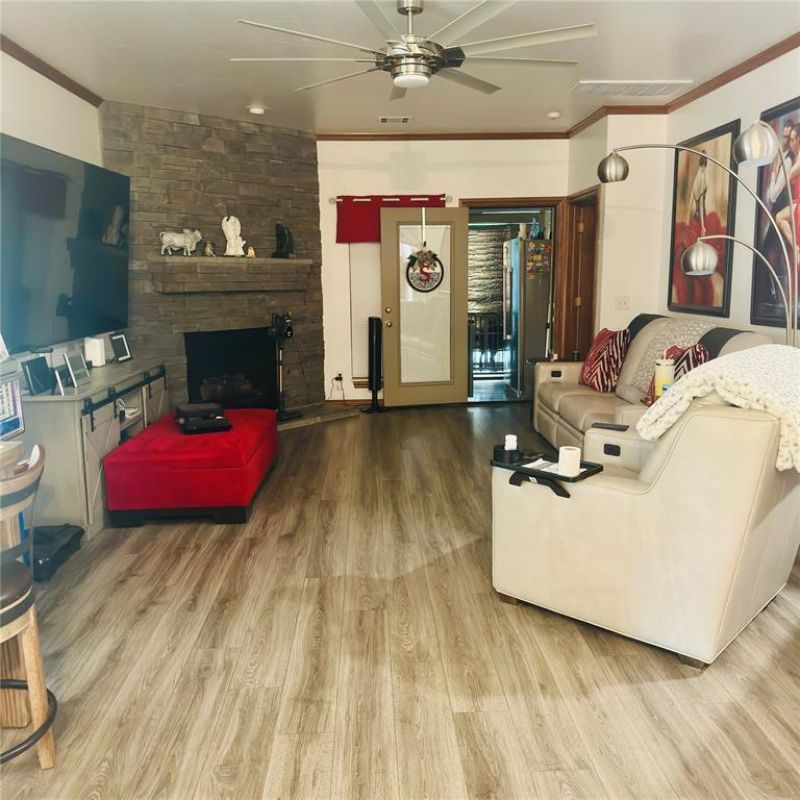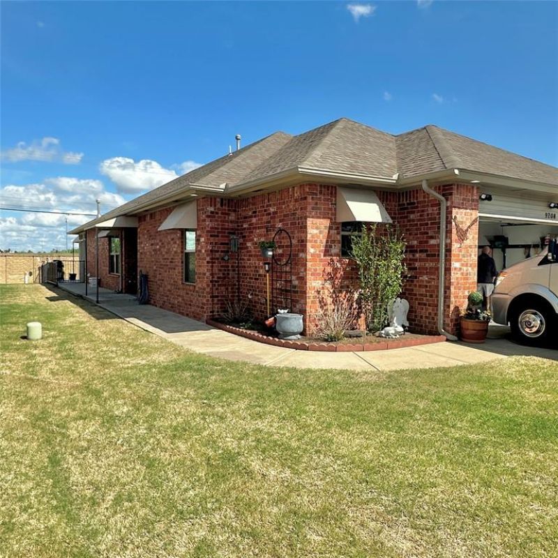 DON'T MISS THIS MUST-SEE HOME! This lovely home Iocated in the gated community of Santa Fe Villas II has been completely updated. It offers a large living room with beautiful flooring and brick fireplace. The primary bedroom is large with a huge walk-through closet connecting to the spacious laundry room. This home has all the extras including new stainless steel appliances, granit countertops throughout the home with new fixtures. The enclosed patio has heat and air and is perfect for morning coffee or could be a home office. The uses are limited to your imagination. In the garage, you will find a large custom-built above-ground storm shelter for the Oklahoma storm season. For your added safety and convenience there is a whole-home Generac Generator to ensure you are never without power. Adding additional beauty, there are awnings on the exterior of the home over the windows. The storage here is abundant. This is a gated community with large ponds with fountains conveniently located near I-240, i-35 and I-44, making your commute to and from work quick and easy with shopping and entertainment just minutes away. Don't miss your opportunity to own this great home. This home has been well-maintained and won't last long! HOA mows front and back yard, along with maintaining all the greenbelt common areas; however, the backyard here is turf, The seller is leaving the refrigerator. The orange cabinet in the garage is reserved along with the seller's personal items. The buyer is to verify the schools. Schedule your tour today. Professional photos to follow.